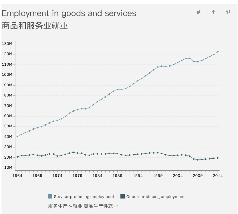 这也揭示了服务成本上升可能是经济水平普遍提高的一个不可避免的副作用。人们或许无法在维持现有生活质量的同时将这些服务的成本降低到20世纪50年代的水平。此外,人们的偏好会放大鲍莫尔效应,而这会加剧生产率提高带来的收益分配不均。例如,表演艺术的劳动力成本总是比其他行业的上升速度更快,这也可以解释为什么演员、明星的薪酬总是那么高。鲍莫尔效应不仅可以帮助我们了解当今的经济,还可以帮助我们了解经济未来的可能路径。它解释了为什么随着经济的增长,劳动密集型服务变得越来越昂贵。